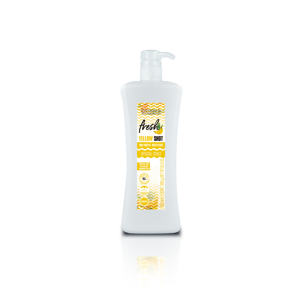 Biokera Yellow Shot Booster hloubkově hydratační krém-gel pro posílení vlnitosti vlasů. Pro zdravé, plné a objemně tvarované vlny bez krepatosti. 100% veganské složení a s 93% přírodních složek. Neobsahuje sulfáty, parabeny a silikony. Vhodný pro všechny typy vlnitých vlasů. Dermatologicky testováno. S příjemnou parfemací banánku v čokoládě.