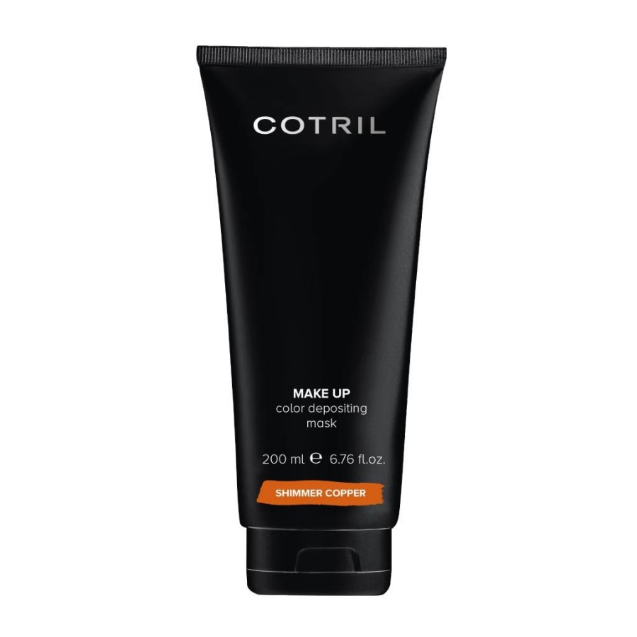 Pro elegantní a jemné barevné výsledky, které barvě vlasů dodávají nový rozměr a zároveň intenzivně pečují o vlasové délky! Ale nejen to! Barvicí masky Cotril Make Up jsou také ideální pro expresní ošetření vlasů v pohodlí domova mezi jednotlivými návštěvami kadeřnického salónu. K dispozici v 7 odstínech (zlatá, sunlight, béžová, měděná, červená, fialová, hnědá). Měděný odstín Cotril Make Up Shimmer Copper je obohacen o pomerančový extrakt s pečujícím účinkem pro kondici vlasů.