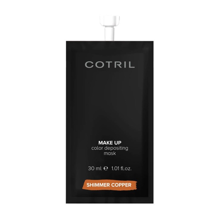 Pro elegantní a jemné barevné výsledky, které barvě vlasů dodávají nový rozměr a zároveň intenzivně pečují o vlasové délky! Ale nejen to! Barvicí masky Cotril Make Up jsou také ideální pro expresní ošetření vlasů v pohodlí domova mezi jednotlivými návštěvami kadeřnického salónu. K dispozici v 7 odstínech (zlatá, sunlight, béžová, měděná, červená, fialová, hnědá). Měděný odstín Cotril Make Up Shimmer Copper je obohacen o pomerančový extrakt s pečujícím účinkem pro kondici vlasů.