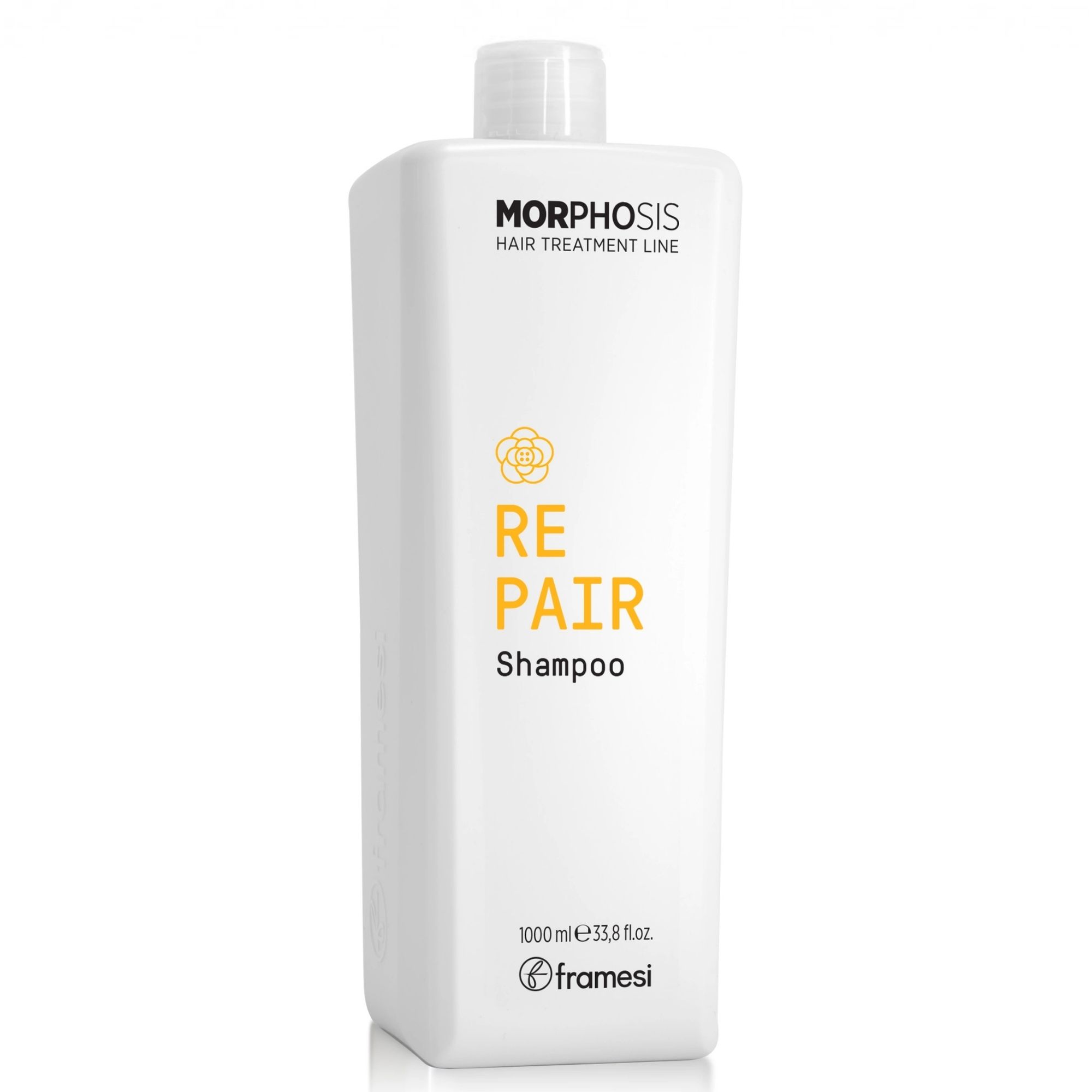 Framesi Morphosis REPAIR obnovující šampon (Framesi Morphosis Repair Shampoo) je profesionální posilující a hydratační mycí péče vyvinutá specificky pro suché, oslabené, poškozené a chemicky přetížené vlasy bez života. Tento mimořádně účinný šampon s hmatatelným obnovujícím efektem šetrně čistí vlasovou pokožku, zatímco hloubkově opravuje a oživuje narušená vlasová vlákna. Díky stoprocentně veganské receptuře obohacené o kaméliový olej, rostlinný mikrokeratin a fytoceramidy aktivně vyplňuje mezery v kutikule, doplňuje chybějící lipidy a zvyšuje celkovou pevnost a odolnost vlasu proti lámání. Pravidelné používání snižuje poréznost vlákna a vytváří na jeho povrchu neviditelný ochranný film, který zabraňuje vysušování a krepatění. Výsledkem jsou dokonale hydratované, poddajné a zářivě lesklé vlasy, které získávají zpět svou ztracenou pružnost a vitalitu.
