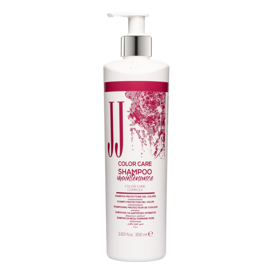 JJ Color Care šampón pro barvené vlasy (Maintenance/Color Care Complex) obsahuje speciální ochranný komplex, který pomáhá fixovat barevné pigmenty, udržuje jas barvy a zabraňuje jejímu vymývání. Tento komplex je obohacený o přírodní výtažek z granátového jablka, který zvyšuje lesk a prodlužuje trvanlivost kosmetické barvy a pomáhá vyplnit dutiny ve struktuře vlasu. Vlasům poskytuje intenzivní dávku hydratace a zároveň je šetrně myje a předchází vyblednutí barvy a zajišťuje tak jedinečnou ochranu barvy. Se šampónem JJ Color Care budou vlasy zdravé, silné a barva zůstane dlouhodobě intenzivní a plná lesku.