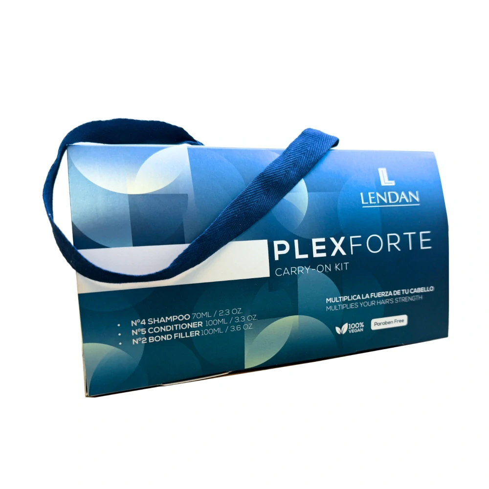 Cestovní kosmetická sada Lendan PlexForte Carry-on Kit (Professional Treatment/Multiplies Your Hair Strenght) pro posílení poškozených a slabých vlasů. Profesionální regenerační péče o vlasy s technologií PLEX FORTE je komplexní řešení určené k obnově poškozených vlasů po chemickém ošetření nebo náročném stylingu. Cestovní sada zahrnuje tři základní kroky – šampon, kondicionér a bezoplachové ošetření – které společně navracejí vlasům sílu, lesk a vitalitu již od první aplikace. Inovativní složení nejen hloubkově čistí pokožku hlavy, ale zároveň intenzivně hydratuje, zaceluje vlasové vlákno a obnovuje jeho přirozenou strukturu. Díky tomu dochází ke znatelnému snížení lámavosti, krepacení i statické elektřiny. Vlasy jsou hebké na dotek, snadno upravitelné a zářivě lesklé. Ideální také pro udržení výsledků profesionálního ošetření v domácím prostředí. Tato regenerační kúra je vhodná pro každodenní péči i jako intenzivní kúra po barvení nebo trvalé.