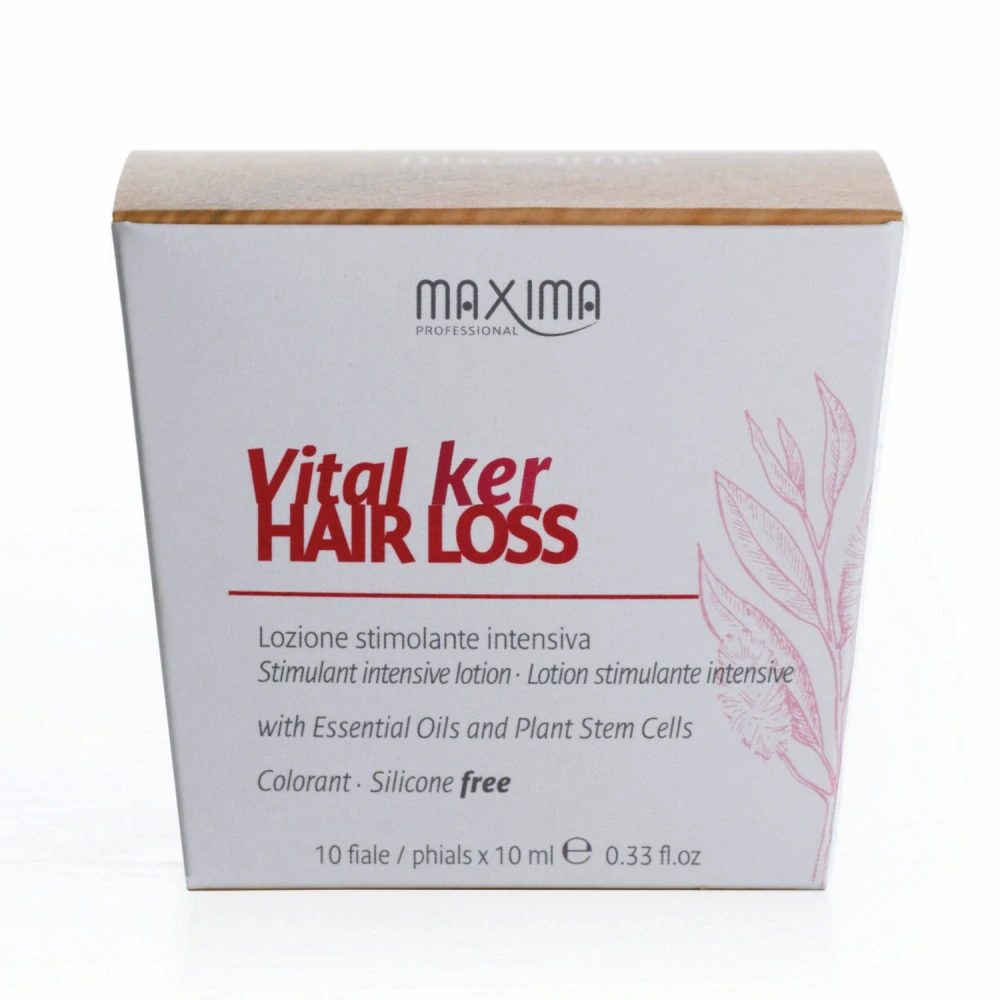 Vital Ker Hair Loss je exkluzivní koncentrovaná směs látek přírodního původu, která zachovává vitalitu vlasové pokožky a pomáhá posilovat vlasy, stimuluje zdravý růst a prodlužuje životní cyklus vlasů. Vzácná směs esenciálních olejů vybraných pro své dezinfekční a posilující vlastnosti důkladně odstraňuje nečistoty, odumřelé části vlasové pokožky a metabolické zbytky a poskytuje vlasové pokožce zcela výjimečný uklidňující účinek. Rostlinné kmenové buňky extrahované ze sedmikrásky srdcovité (Globularia Cordifolia) stimulují obnovu fyziologického cyklu růstu vlasů, aktivují opravný a detoxikační proces, napomáhají obnově buněk a také snižují atrofii folikulů a jejich stárnutí. Komplex vitamínů skupiny B (B3, B5 a B6) pomáhá zlepšovat krevní oběh a mikrocirkulaci vlasové pokožky, zlepšuje okysličení a vstřebávání živin. Vital Ker Hair Loss je speciální řada produktů určena jak k prevenci před vypadáváním vlasů, tak také k ošetření již probíhajícího vypadávání vlasů.