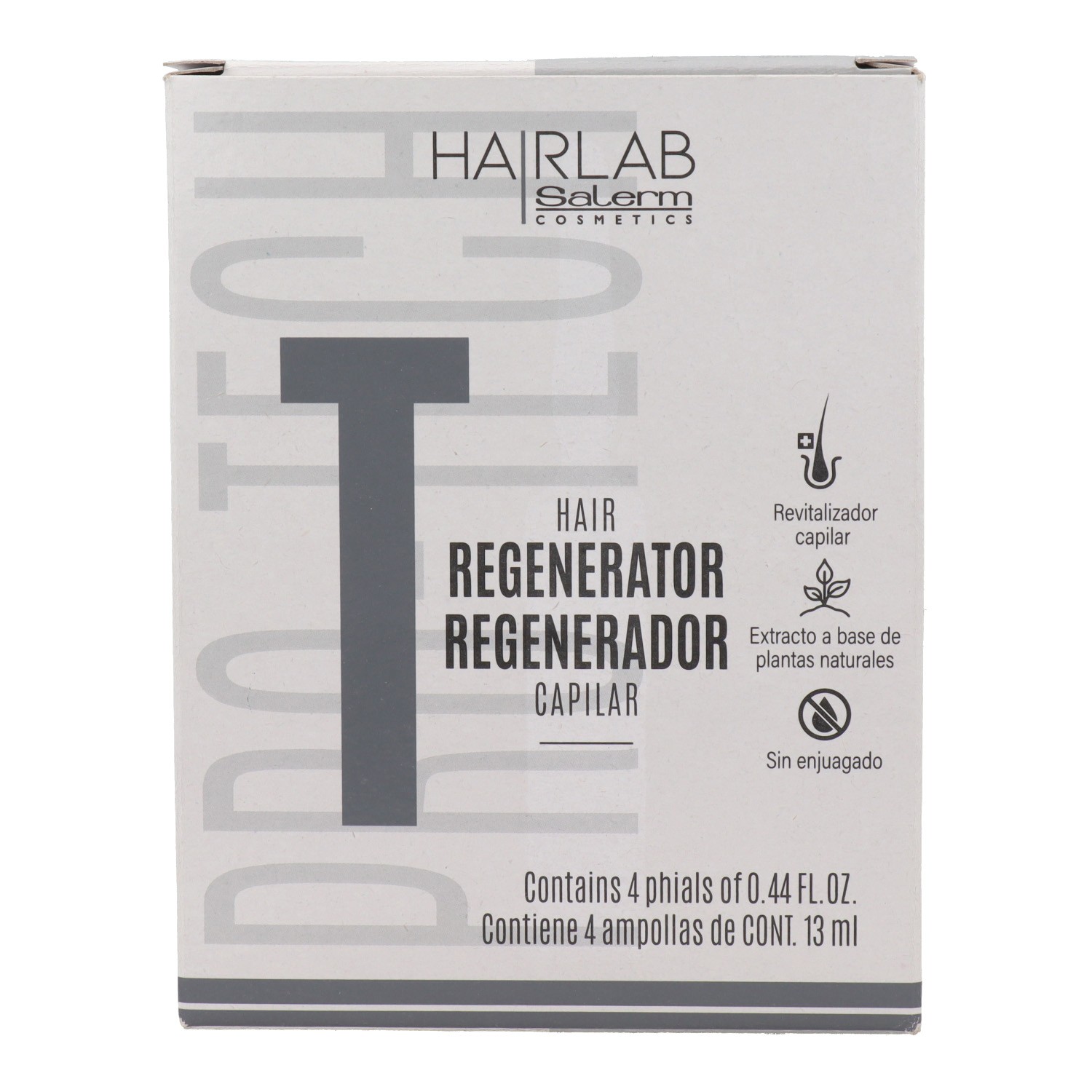Salerm HAIR LAB Pro-Tech energizující ampule (Hair Regenerator/Regenerador Capilar) působí jako šoková terapie, která intenzivně napomáhá při problémech s řídnutím a vypadáváním vlasů. Okamžité ošetření vlasů je ideální pro rychlou a okamžitou léčbu vypadávání vlasů z důvodu jejich podvýživy. Nedostatek vyživujících složek vede nejen k řídnutí vlasů, jejich poškození a vypadávání, ale také uvádí vlasové cibulky do klidového režimu „spánku“. Vlasová voda působí na opětovné obnovení rovnováhy pro zdraví vlasů. Ampule obsahují aktivní rostlinné látky, které jsou nezbytné pro řádnou a správnou funkci vlasových folikul a růst vlasů. Obohaceno o Serenoa Repens, účinnou látku zpomalující 5alfa-reduktázy a přeměnu testosteronu (HT) na DHT, odpovědného za androgenetickou alopecii (nadměrné vypadávání vlasů podmíněné přítomností testosteronu) a s tímto souvisejícími dalšími záněty. Keratin na přírodní bázi proniká až do hloubky vlasu, kde obnovuje a regeneruje poškozené fragmenty vlasového stonku. Ceramidy zvyšují soudržnost keratinu ve vlasovém vláknu. Salerm HAR LAB Pro-Tech Hair Regenerador navrátí vlasům jejich sílu, plnost a přirozený lesk. Rozlučte se s řídnoucími vlasy a připravte se na kadeře plné síly a energie.